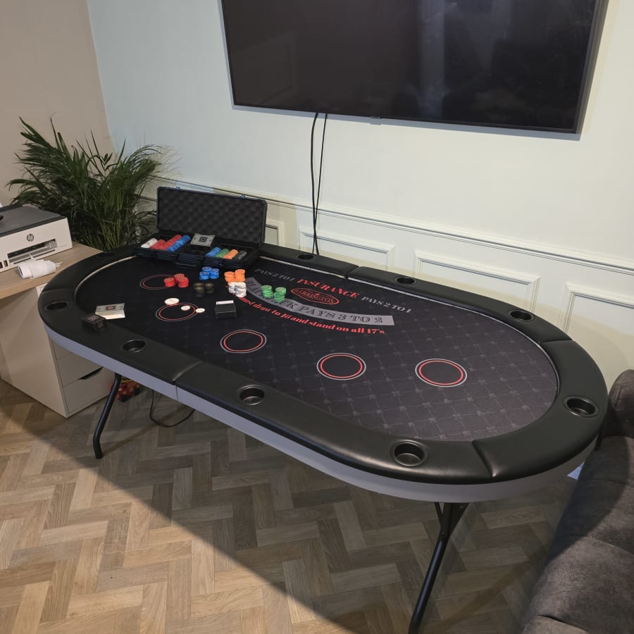 Bring the thrill of Vegas to your door. Our Poker & Black Jack table hire gives you a premium 10-player casino table complete with playing cards and poker chips. Perfect for private parties, corporate events, and themed nights. Fast setup. Professional look. Real casino feel. ♠️♥️