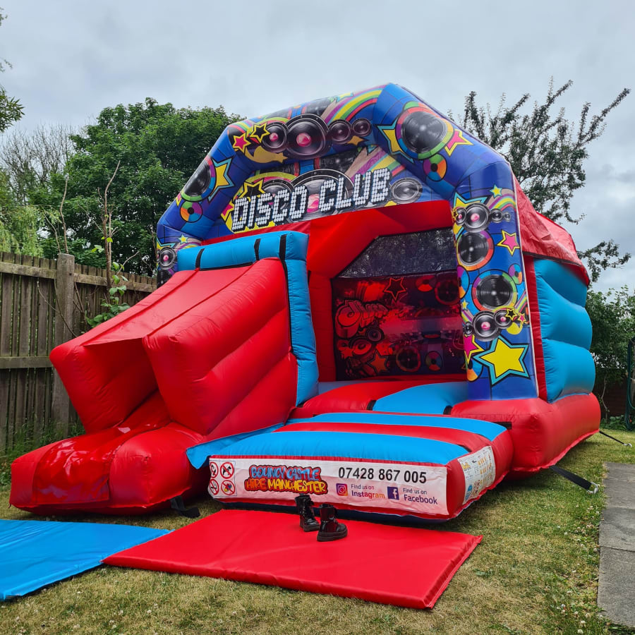 The disco club combi with front slide is one of our most popular castles for the kids, perfect for all occasions with a slide to the front your guest won’t want to go home!