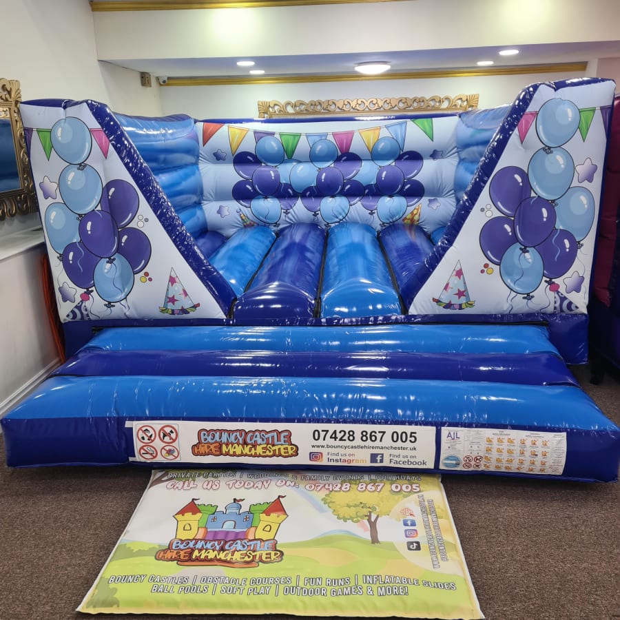 Make your next event unforgettable with the Blue Party Time bouncy castle. It's the ultimate entertainment solution for indoor gatherings, ensuring your guests have a fantastic time, regardless of the weather outside.